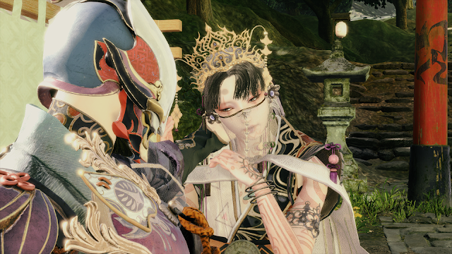 Someone on twitter mentioned these poses seem to work together and they do indeed. Interestingly, Yoshiro never touches Soh in-game and it makes these two poses seem that much more deliberate. She cannot touch Soh directly. (Soh is a spirit and can't seem to interact much with the physical world)